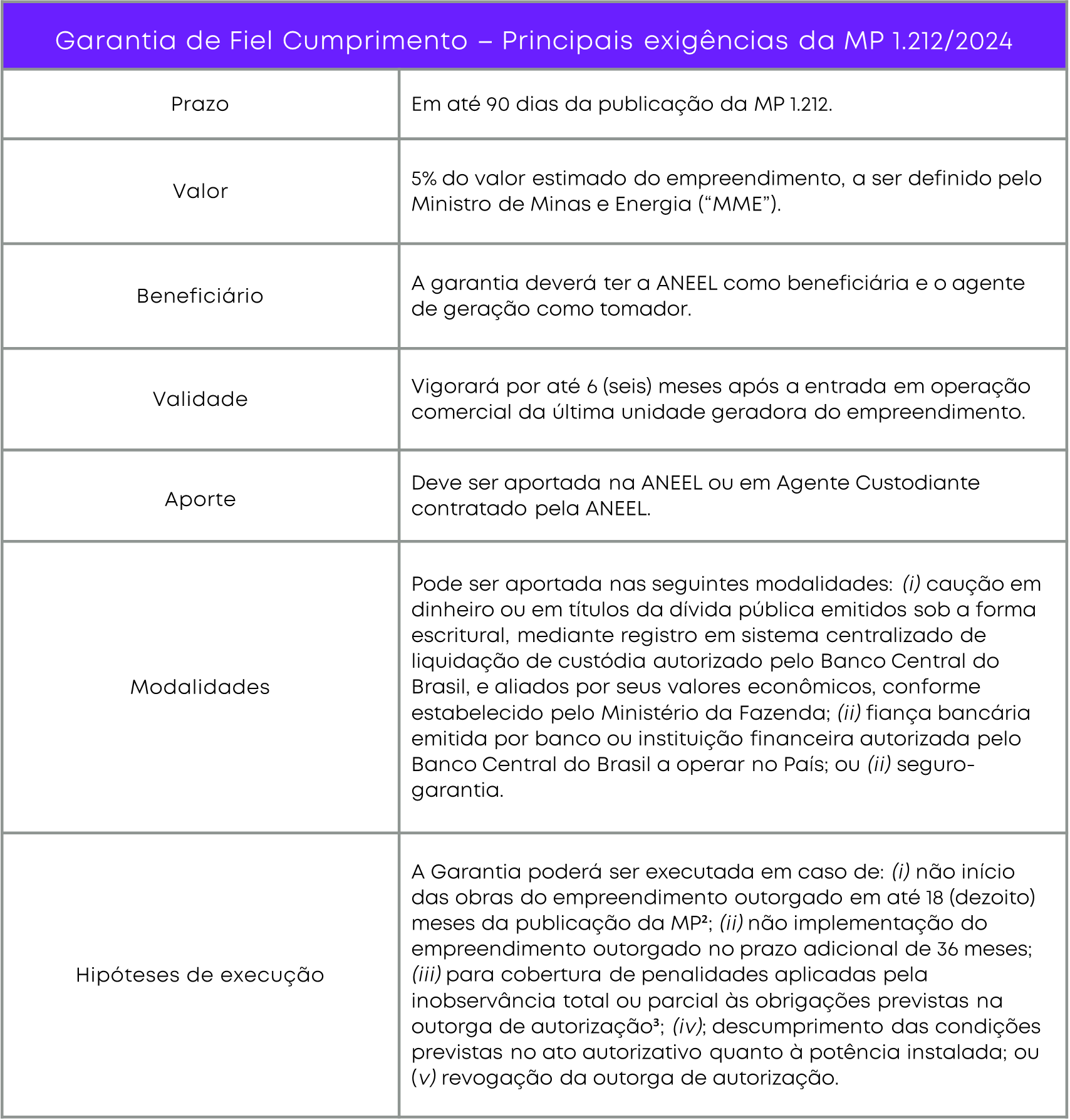 Em relação à Garantia de Fiel Cumprimento, deverão observar as principais exigências da MP, conforme previsto na Cláusula Terceira do Termo: